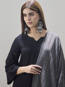 Classic black base with colorful stripes makes this shawl both versatile and stylish for daily wear.