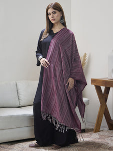 Bold and beautiful, this burgundy striped shawl adds a pop of color and elegance to your seasonal wardrobe.