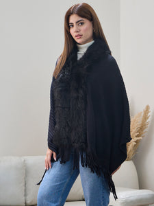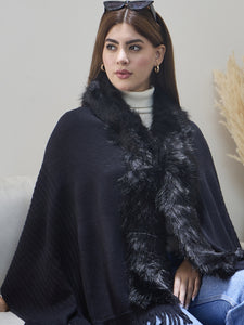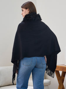 Burgundy striped fur poncho combining deep tones with stripe detailing striking and warm.