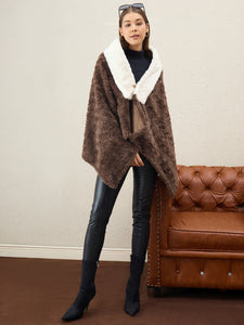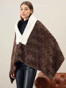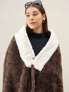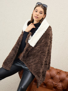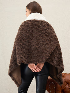 Dark Brown Texture White Fur Poncho