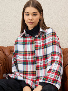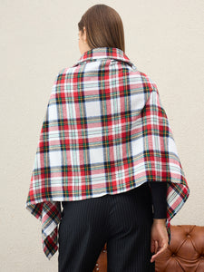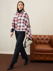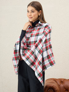 Vibrant and cozy, this white multi plaid poncho with a smart collar detail brightens up any winter outfit while keeping you snug.