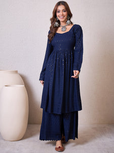 Placeholder Blue Chikankari Sweetheart Set - InWeave