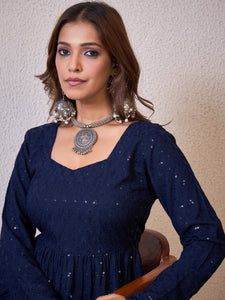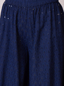 Vibrant yet graceful, the Blue Chikankari Sweetheart Set is a striking blend of tradition and modernity. Crafted in a rich blue base with fine Chikankari embroidery, it showcases the beauty of detailed craftsmanship. The sweetheart neckline enhances its contemporary charm, while the soft fabric ensures ease and comfort. Complete with coordinated bottoms, this set is perfect for festive celebrations, cultural events, or evening wear. Pair it with oxidized jewelry for a traditional touch or style it minimally for a refined, modern look.