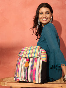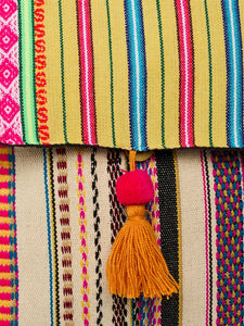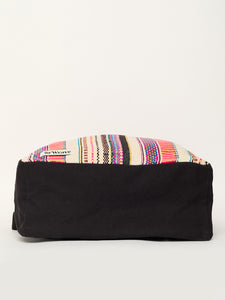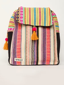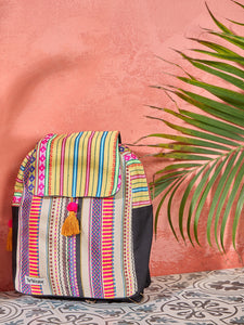 This vibrant vertical backpack features a striking pink and yellow rope design with a coordinating yellow flap. Its unique color combination and eye-catching patterns make it a standout accessory for those who want to add a splash of color to their outfit. Perfect for carrying your essentials with style.