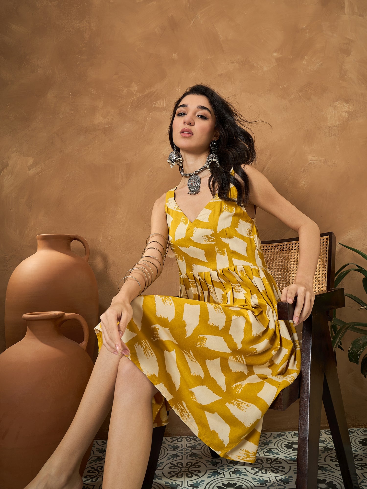 Elegant and effortless, the Honey Yellow Beige Sweetheart Dress brings warmth and romance into one piece. The soft sweetheart neckline and dual-tone palette create a graceful, contemporary look.