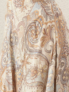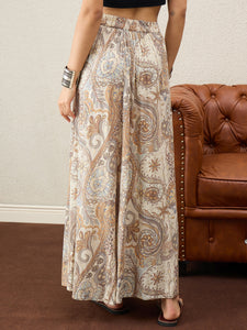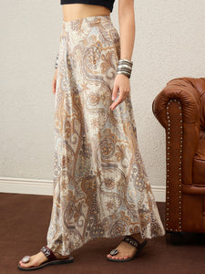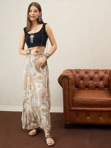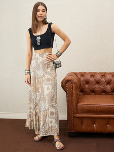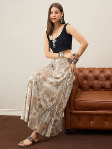 Delicate paisley flower motifs adorn this beige skirt, giving it an elegant and timeless appeal. Crafted in a flattering A-line silhouette, it’s perfect for both festive and casual occasions.