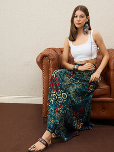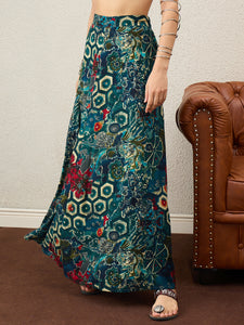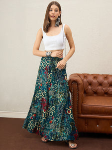 Chic and versatile, this dark teal foil skirt adds a hint of glamour to any occasion. Its graceful flare and metallic detailing make it perfect for festive evenings.