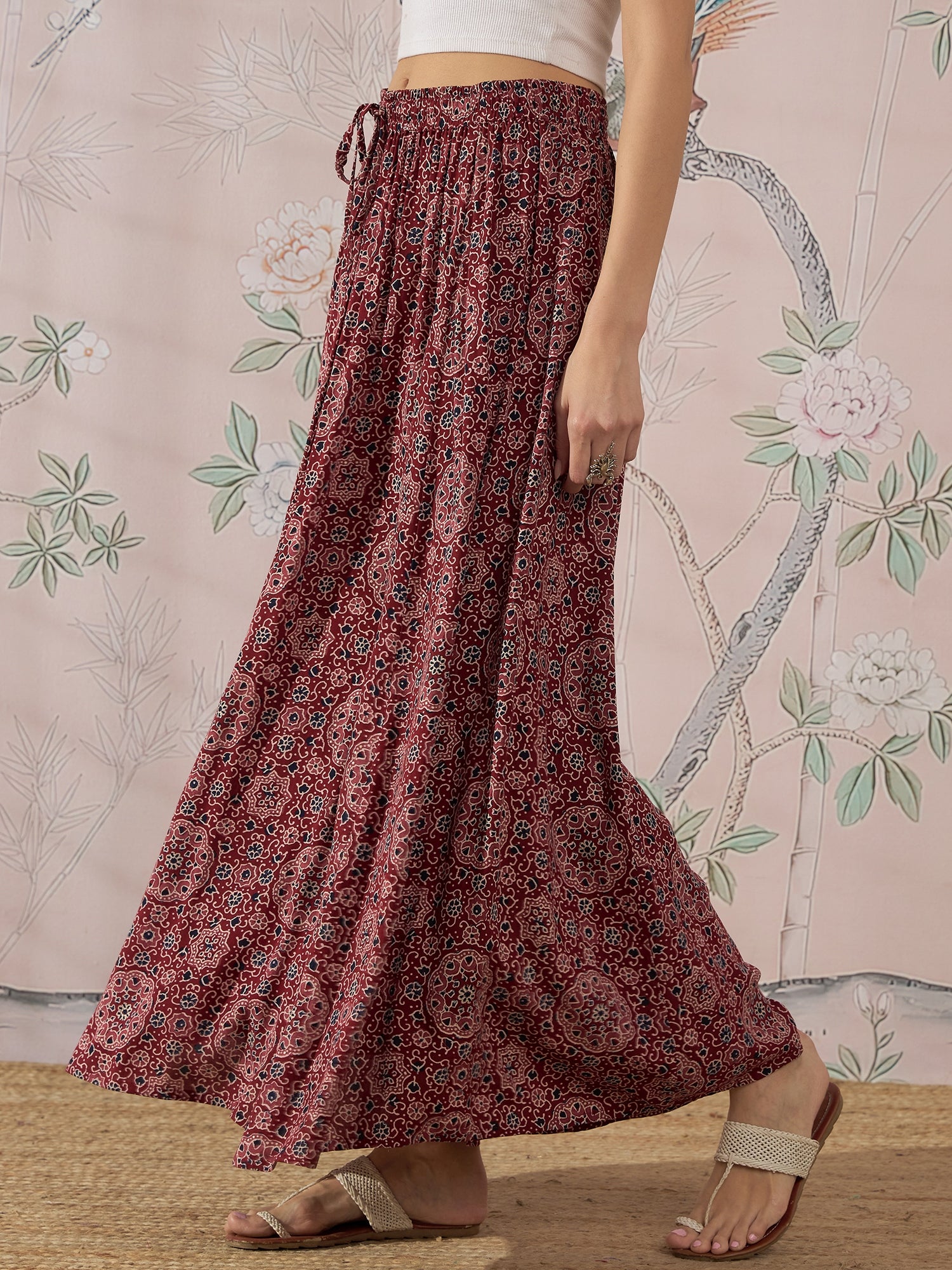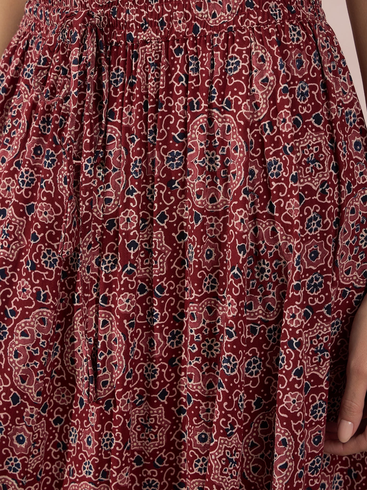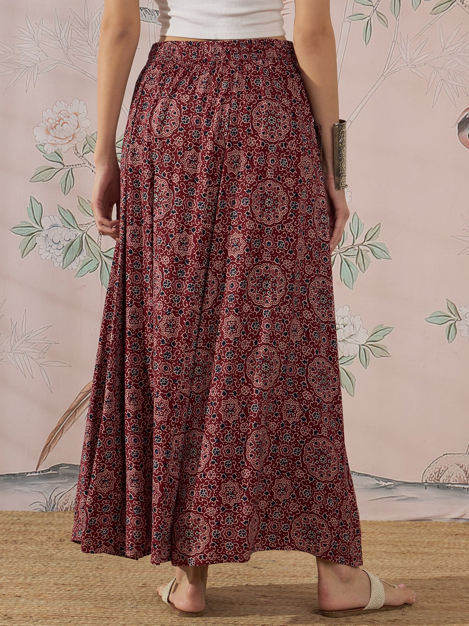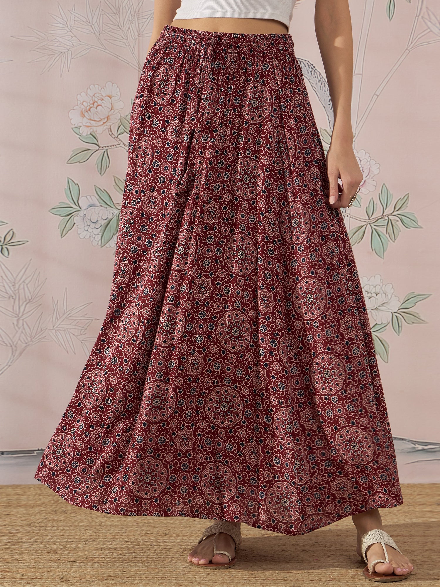 Timeless and elegant, this navy and maroon Ajrakh skirt features an exquisite traditional Ajrakh print, blending heritage with modern style. Pair it with a solid blouse, crop top, or kurta for a chic ethnic look.