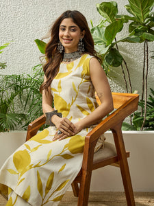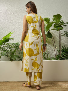 Placeholder Mustard Beige Fruit Kurta Pant Set - InWeave
