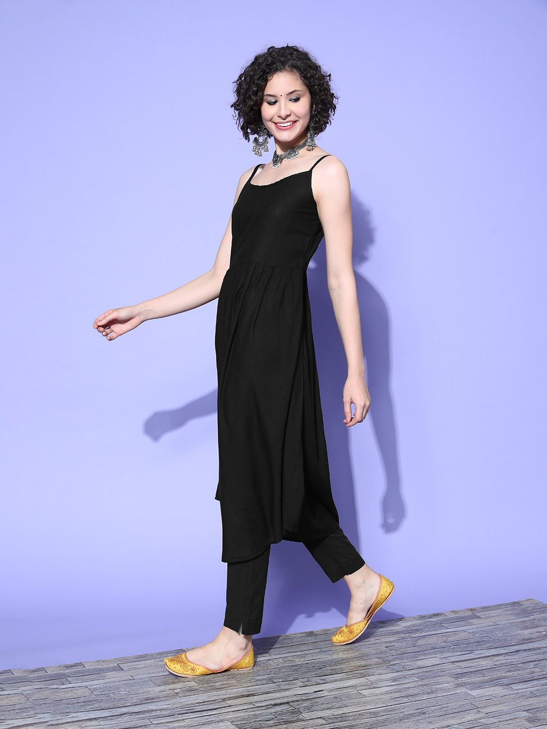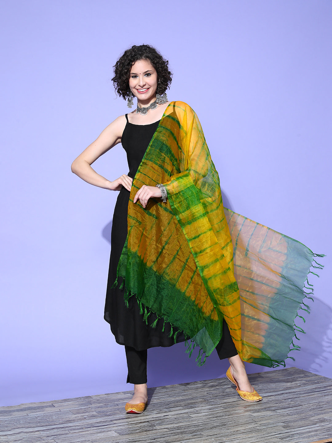 Contrast colors are so in! Grab the coolest apparel of this trend with this strappy kurta. The Mustard Green color dupatta can glam up any outfit. Top Fabric Used : Rayon