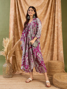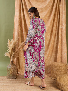 Deep hues meet timeless design in the Wine Brown Paisley V Neck Kurta Set. Ideal for formal gatherings, this piece brings richness and flow to any occasion.