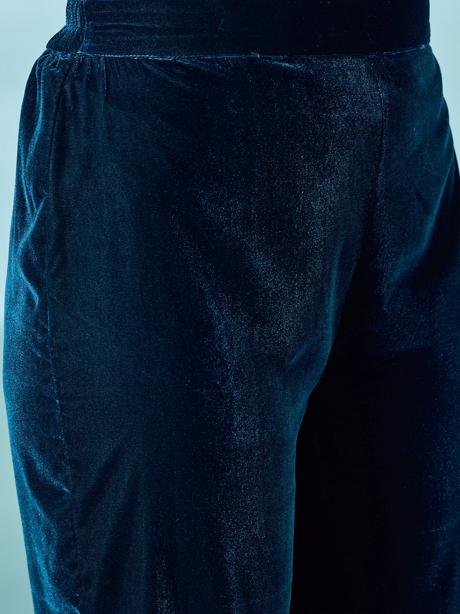 Placeholder Peacock Teal Velvet Flared Kurta Set - InWeave