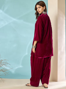 Experience timeless elegance with this velvet salwar kurta set. The rich fabric and classic silhouette make it a perfect choice for weddings and festive occasions, ensuring you stand out with grace.