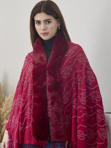 Bold and luxurious, this red shimmer fur poncho adds a vibrant pop of color to your wardrobe. Ideal for evening outings or festive occasions, it offers both warmth and a statement-making style.