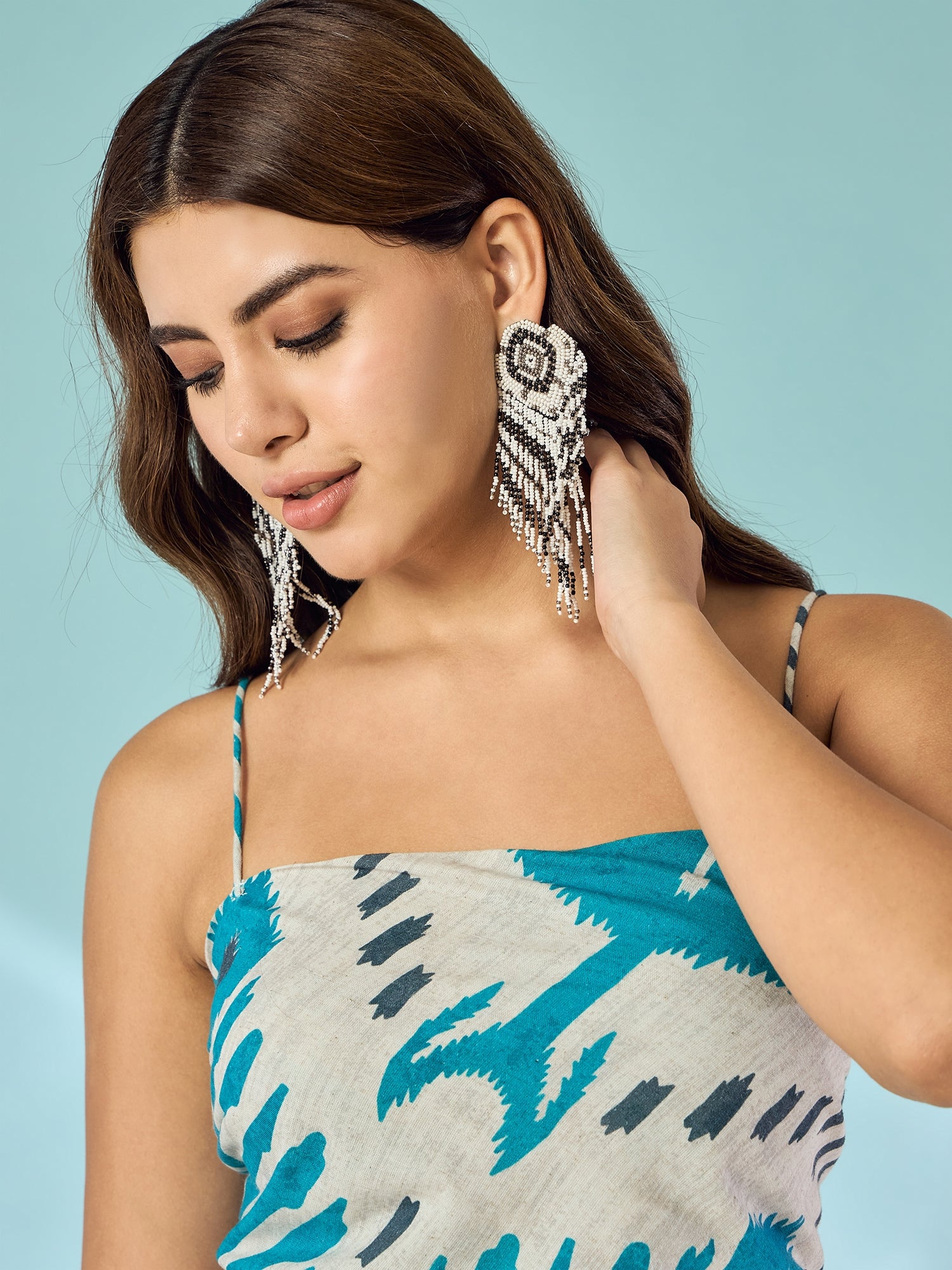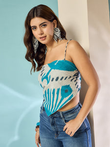 Bright and beautiful, the Sky Blue Ikkat Scarf Top adds freshness to your wardrobe. The traditional Ikkat weave and contemporary cut make it perfect for both casual and festive looks.
