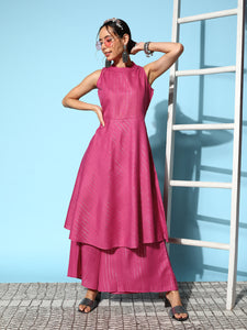 Pink Lurex Boho Sleevless Kurta Set
