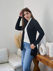 Black embossed texture shrug with raised pattern for depth chic and versatile over many outfits.