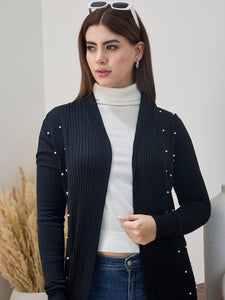 Black beads shrug with contrasting white beadwork statement accessory for evening wear.