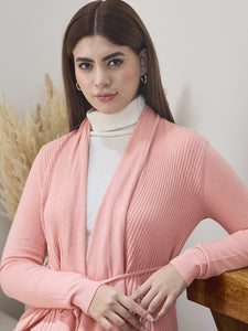 Peach striped tie-up shrug in light hues with tie-up front soft and feminine layering option.