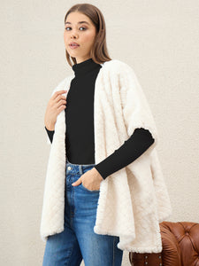 The White Texture Fur Shrug offers a classic look that pairs effortlessly with any outfit. The pure white tone and luxurious fur edge create a sophisticated finish for any occasion.