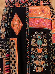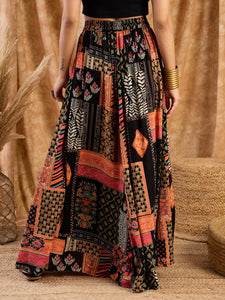 Flaunt effortless style with our Black Multi A-Line Skirt. The modern floral pattern brings a pop of color against a sleek black base, while the A-line cut flatters every figure. Pair it with a crisp blouse and sandals for brunch or elevate it with heels and a statement top for an evening out.