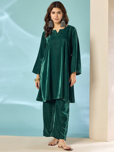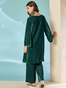Placeholder Teal Green Velvet Long Sleeve Kurta Set - InWeave