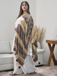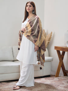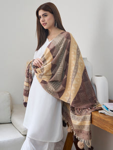 Natural and neutral, this brown-beige fur shawl provides both warmth and style for a cozy winter ensemble.