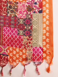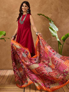 Placeholder Barn Red Silk Boho Orange Multi Kurta Set - InWeave