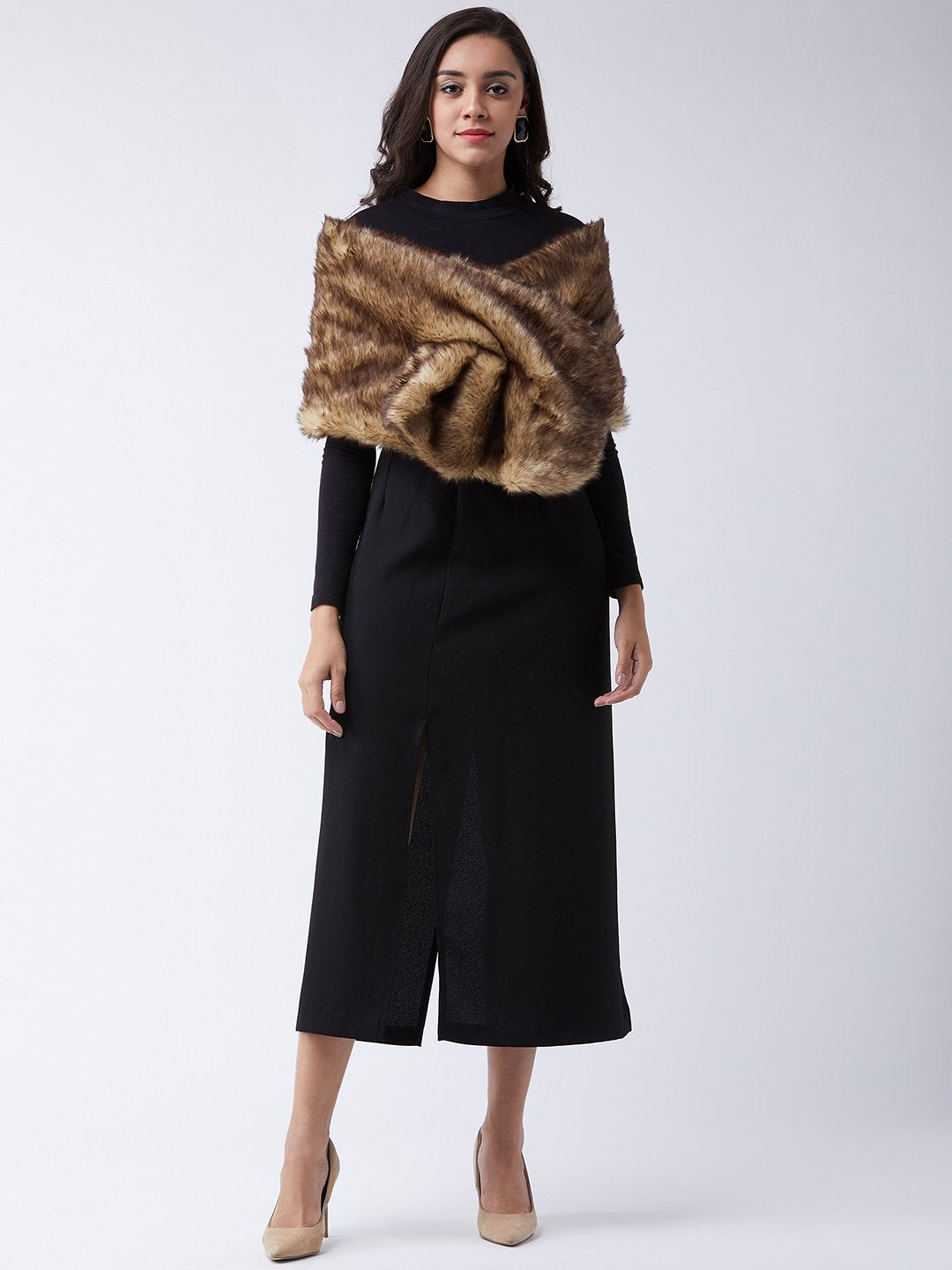 Stylish Fur Cape from InWeave can be worn two ways,wear it like a shawl or like a poncho for different looks. Product made of Acrylic. Dry Clean Recommended