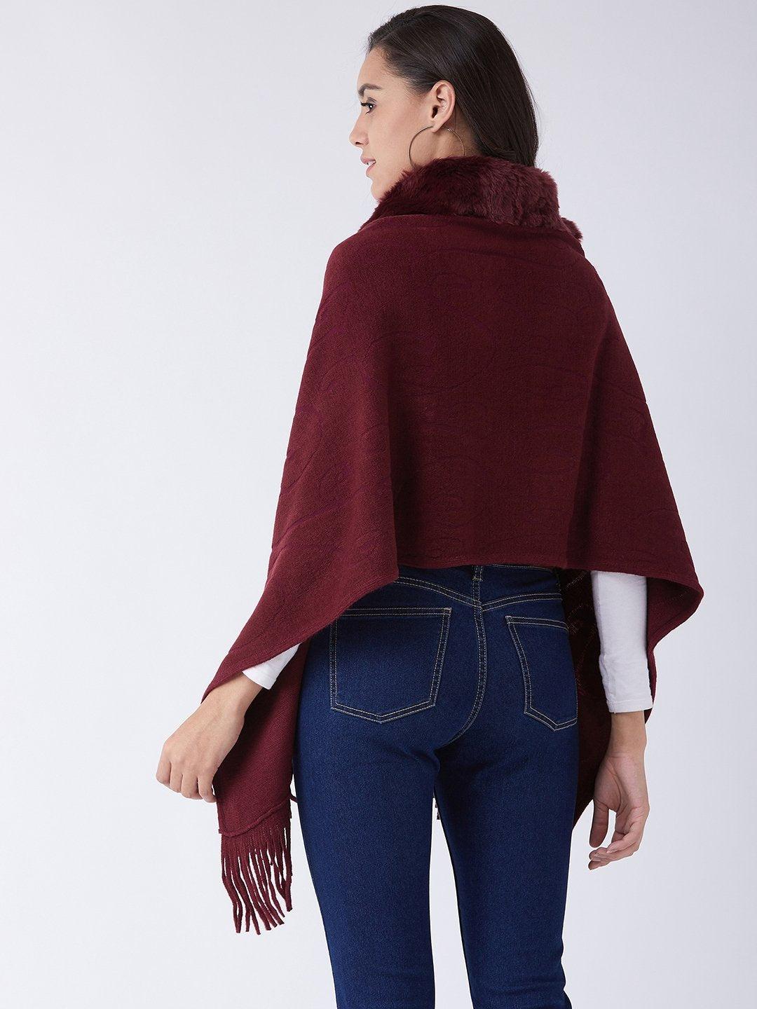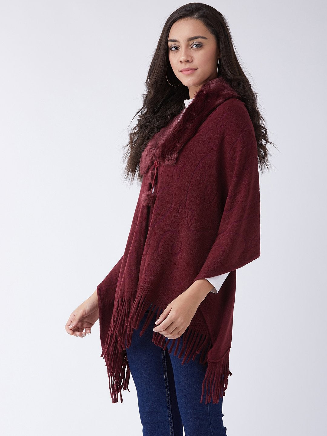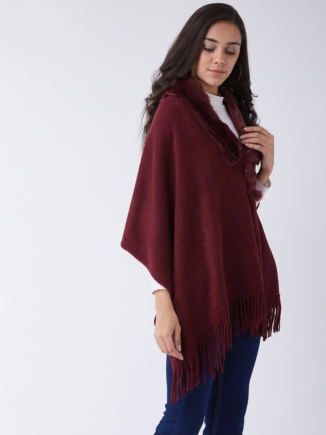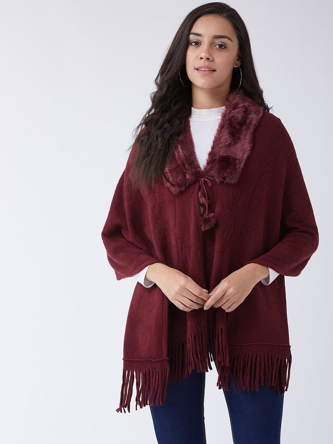 Stylish Fur Cape from InWeave can be worn two ways,wear it like a shawl or like a poncho for different looks. Product made of Acrylic. Dry Clean Recommended