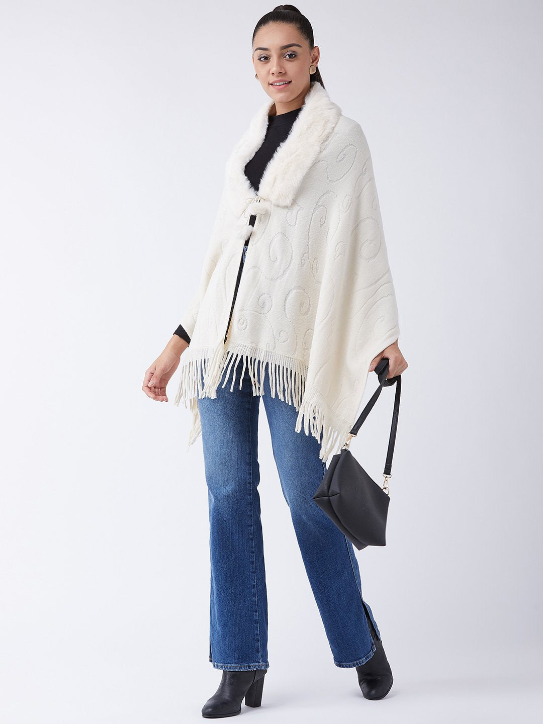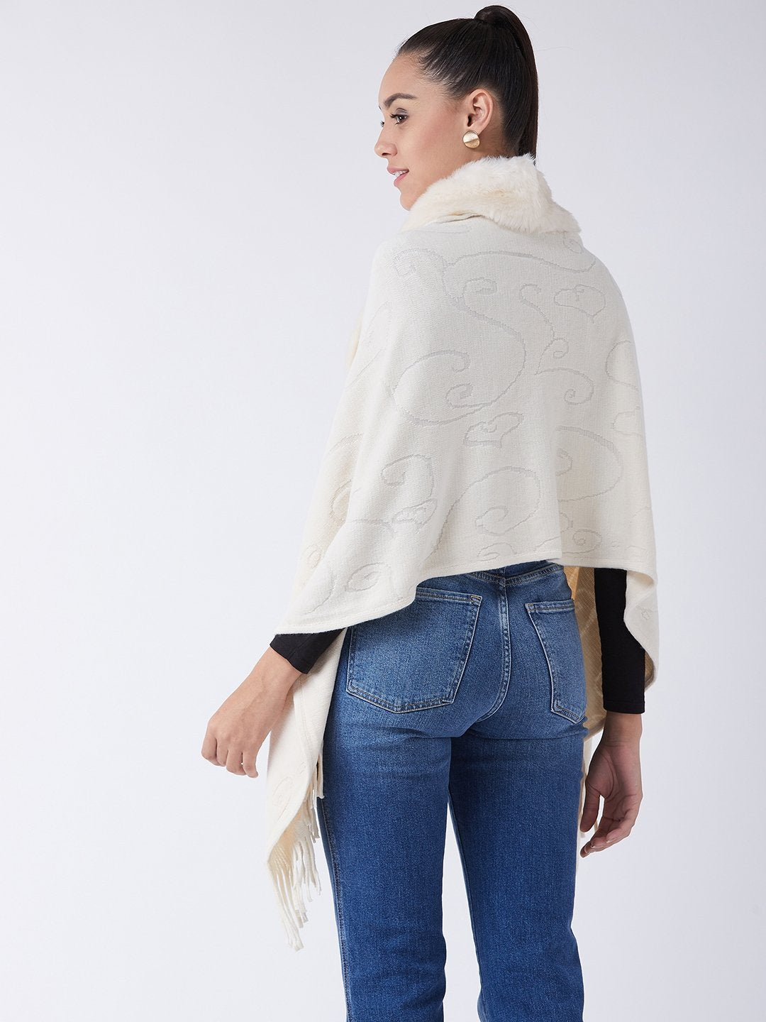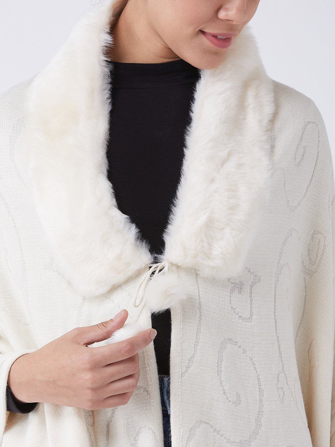 Stylish Fur Cape from InWeave can be worn two ways,wear it like a shawl or like a poncho for different looks. Product made of Acrylic. Dry Clean Recommended
