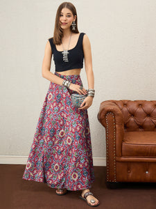 A timeless piece featuring traditional Ikkat patterns in classic black. Its elegant flow and bold design make it suitable for both modern and ethnic styling.