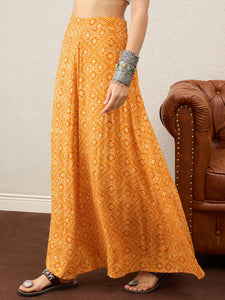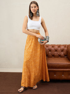 Placeholder Amber Yellow Bandhej Foil A-Line Skirt - InWeave