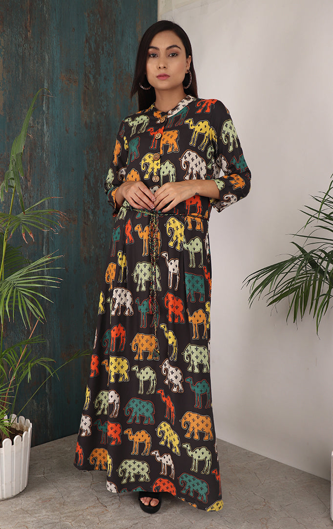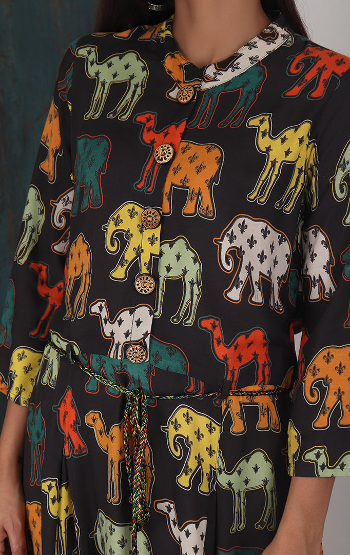 If you love animal prints then this is for you. It's Nehru Collar makes it look more majestic and gracious. A thin dori is provided so that you can adjust its fitting according to your requirement.
