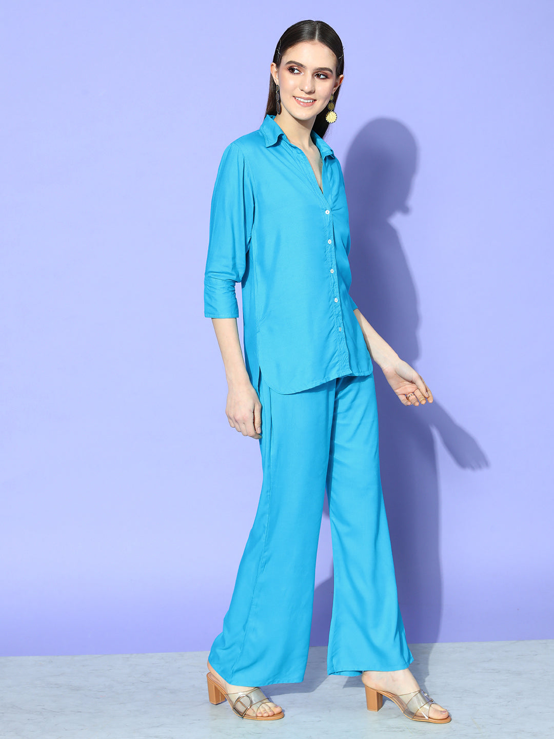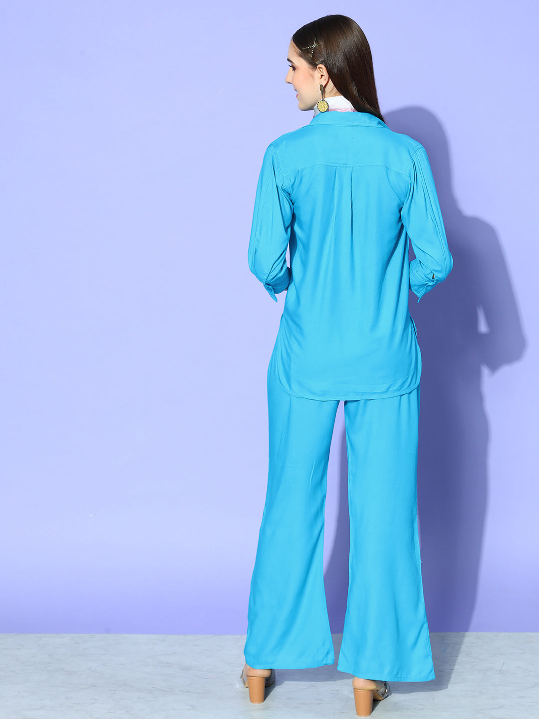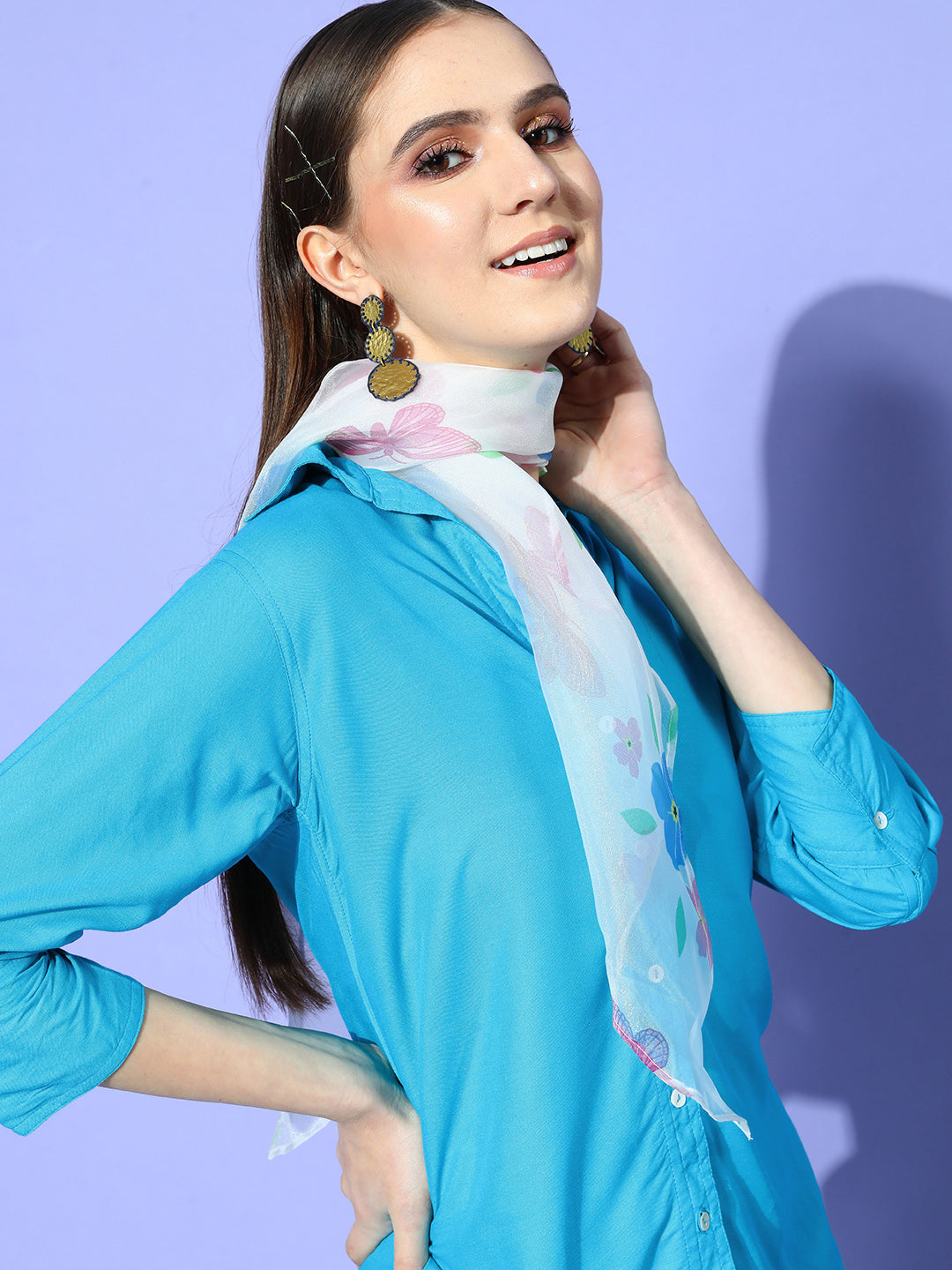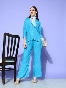 Aqua Blue Coord Set With White Butterfly Scarf
