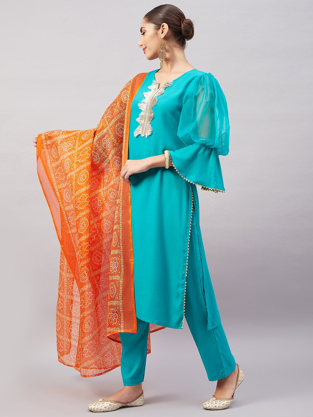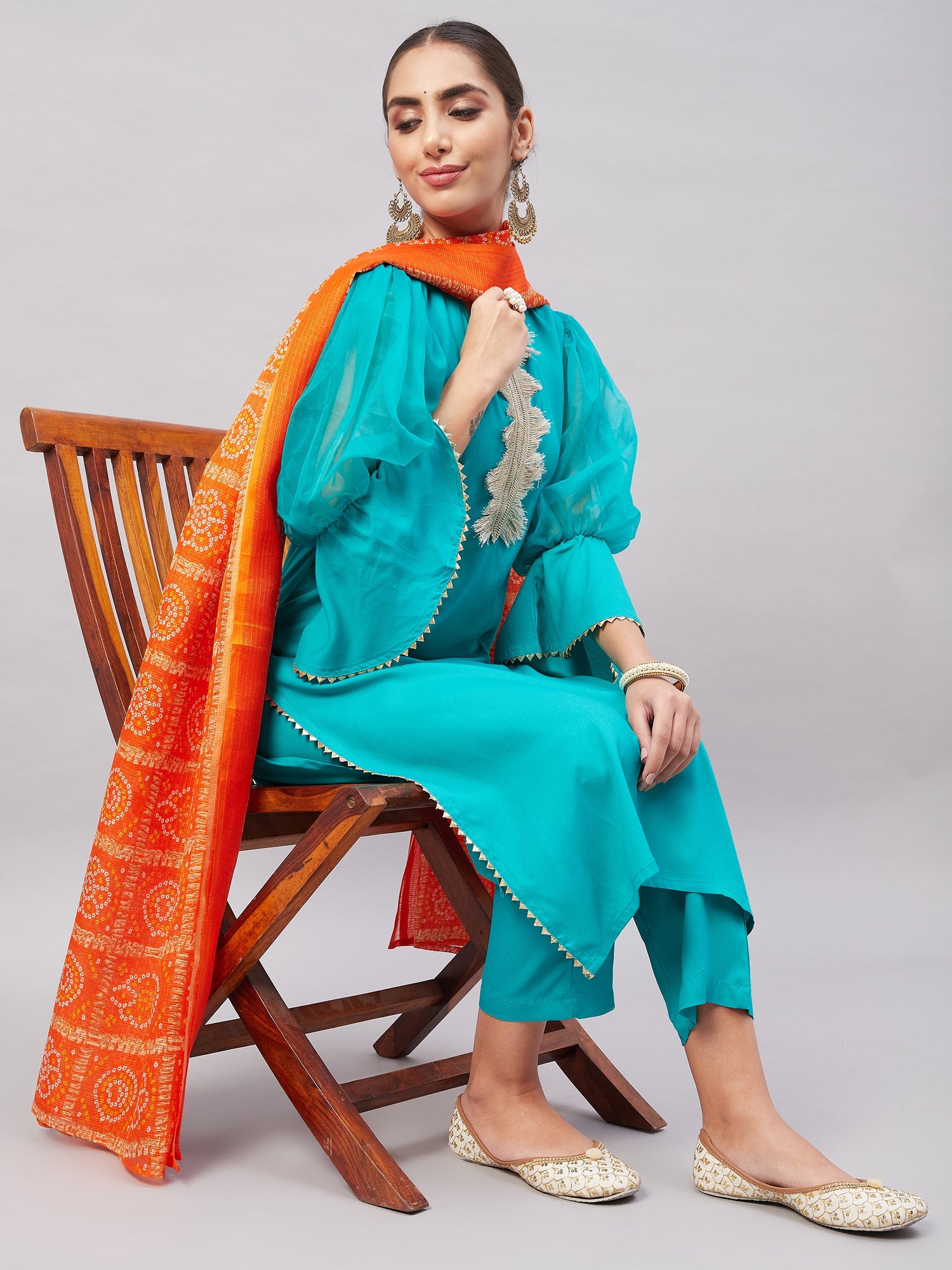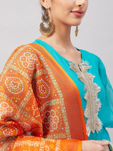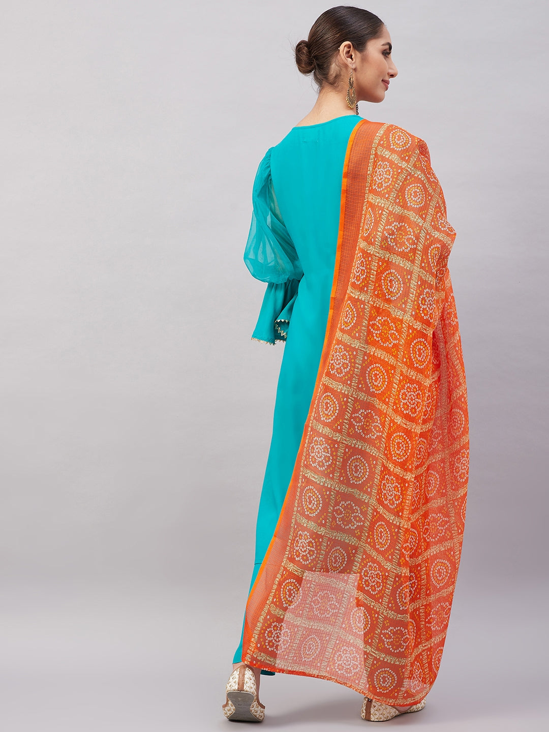 The Set is crafted from best of Indian fabrics. Style it with Oxidised jewelery and juttis and you are good to go for any outing Hand Wash Only Seperately.