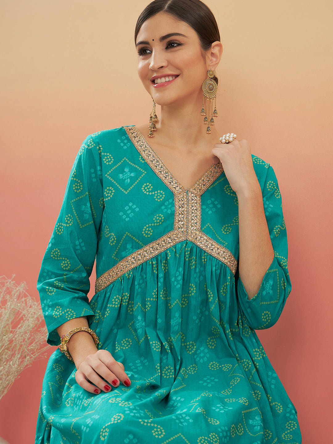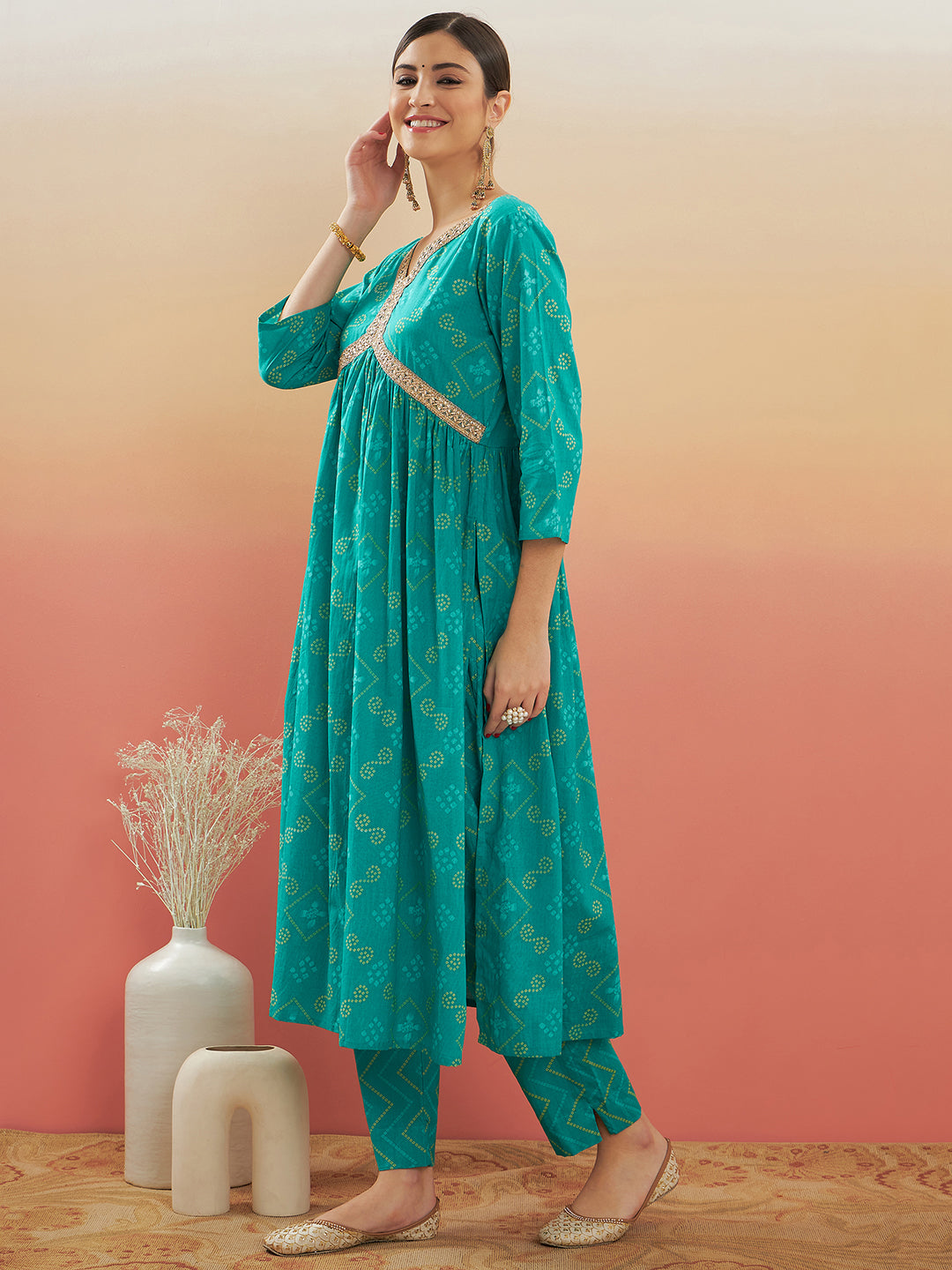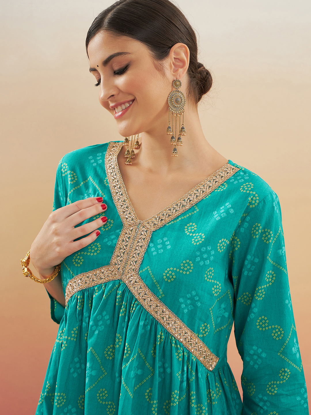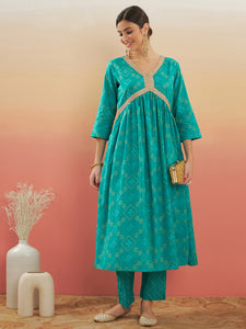 Placeholder Aqua S Print Alia Cut Gota Work Kurta Set - InWeave