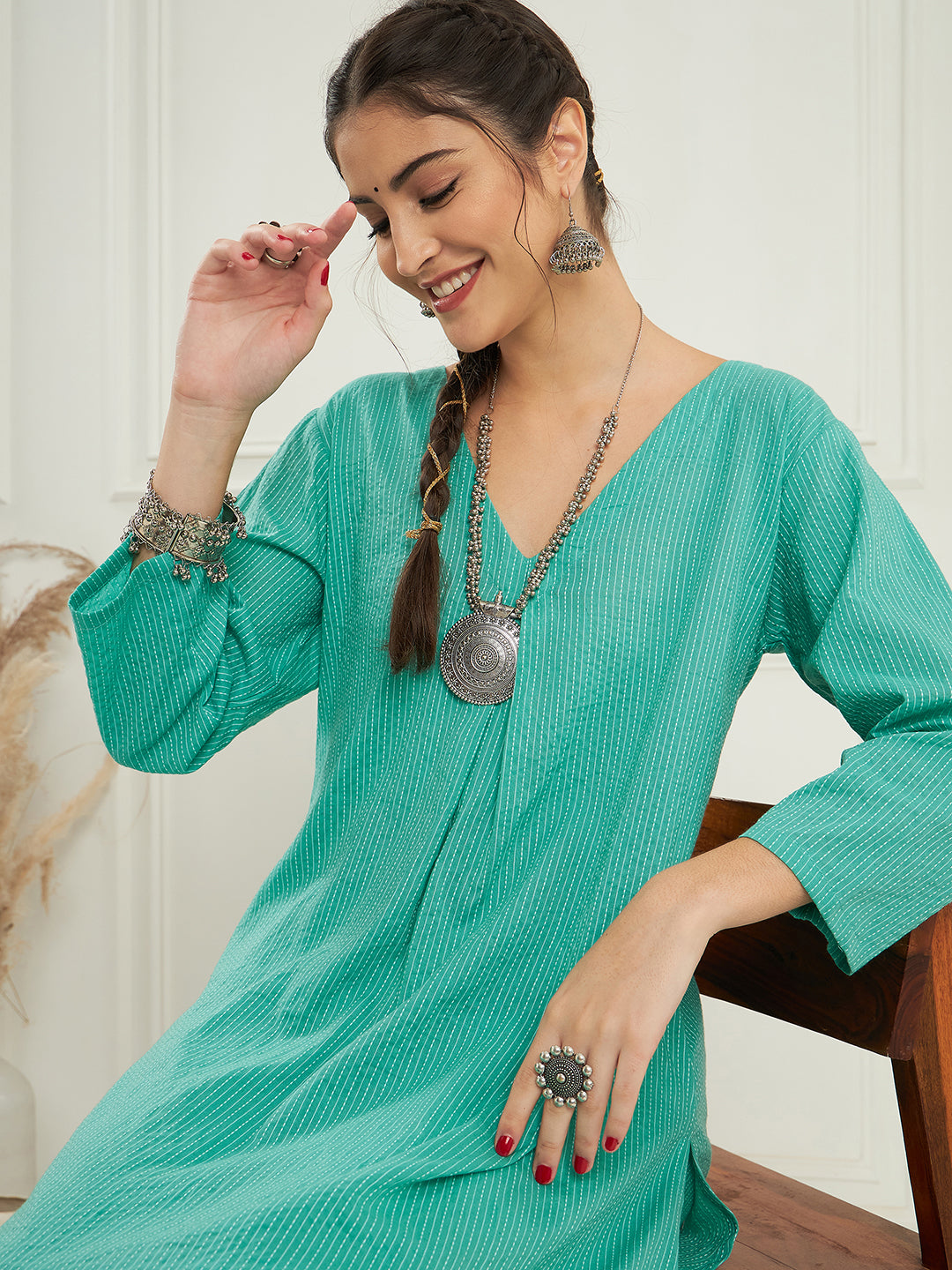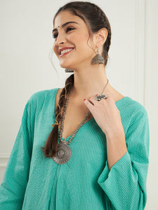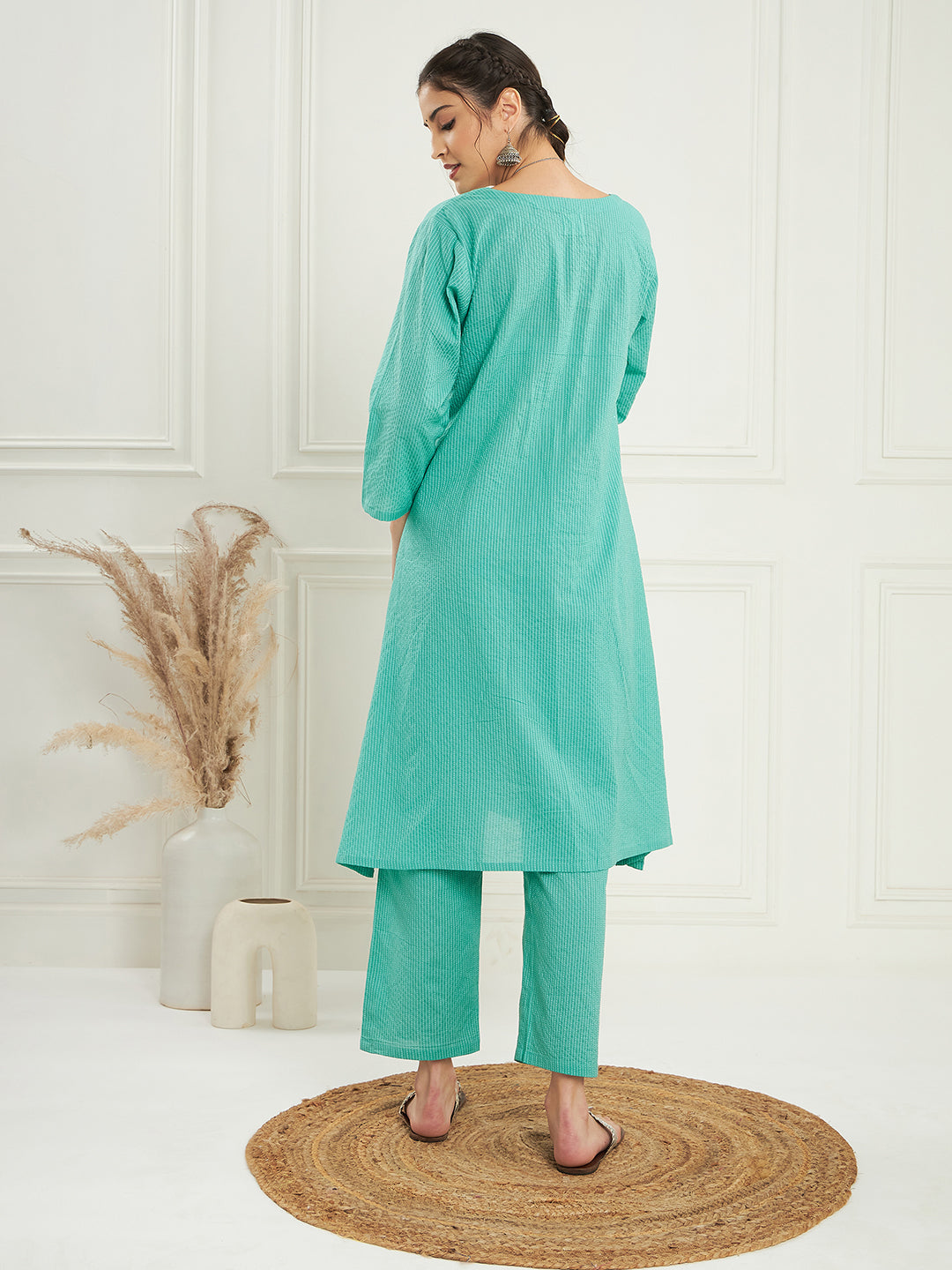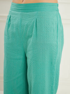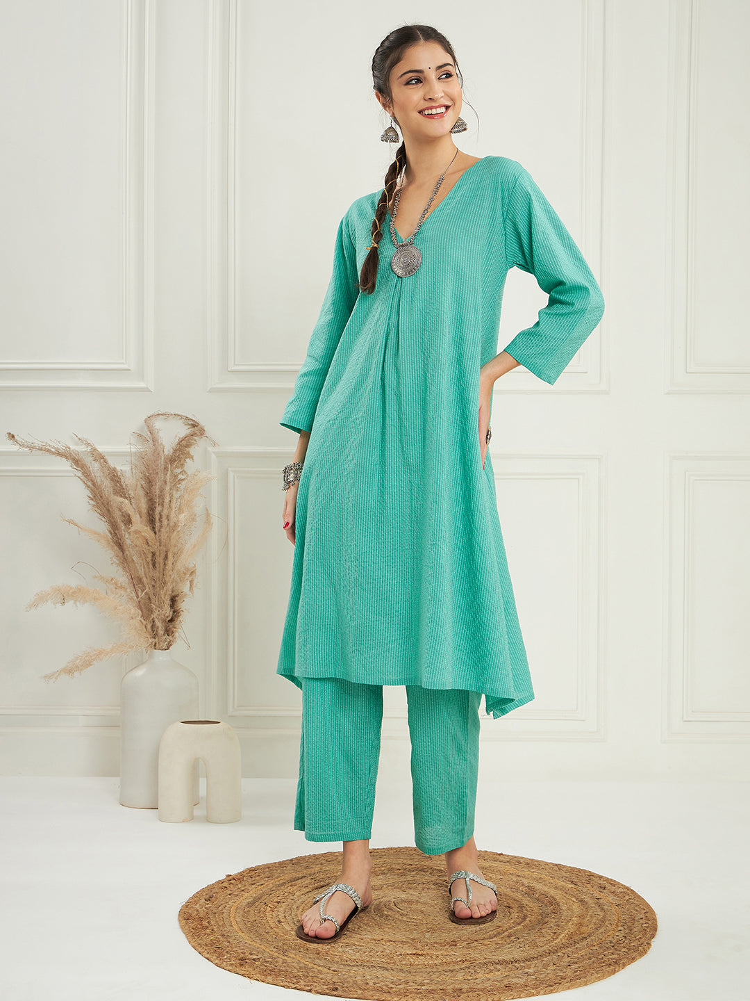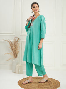 Arctic Blue Kantha V Neck Kurta Pant Set