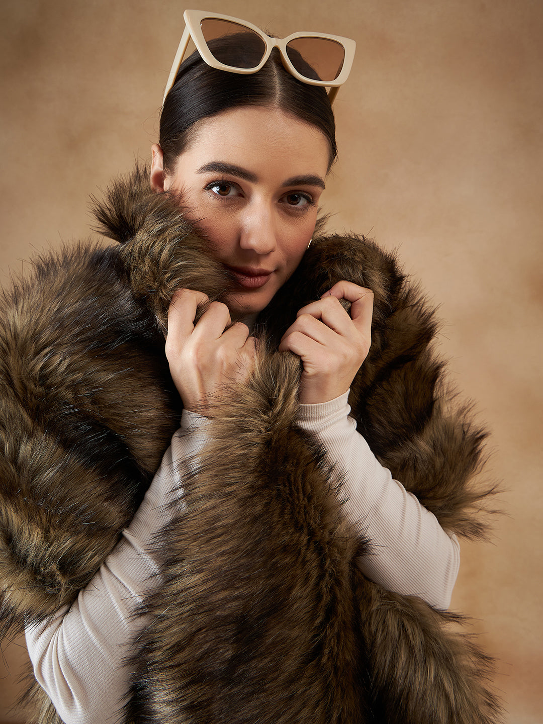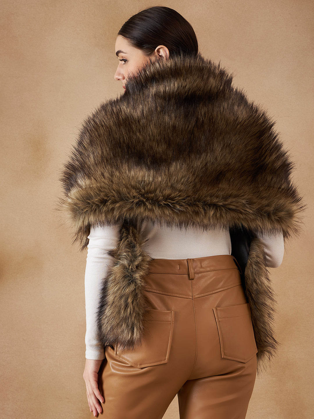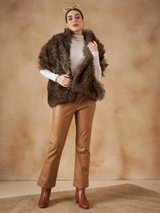 Stylish Fur Cape from InWeave can be worn two ways,wear it like a shawl or like a poncho for different looks. Product made of Acrylic. Dry Clean Recommended