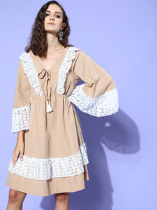 Craftcore refers to ensembles that are accentuated by crochet and schiffli along with beautifully crafted trims. Also, they boast lovely details, such as lace inserts, tie-up, ruffles, wide necklines, stylised sleeves, and more.