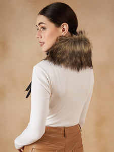 Stylish Fur Cape from InWeave can be worn two ways,wear it like a shawl or like a poncho for different looks. Product made of Acrylic. Dry Clean Recommended
