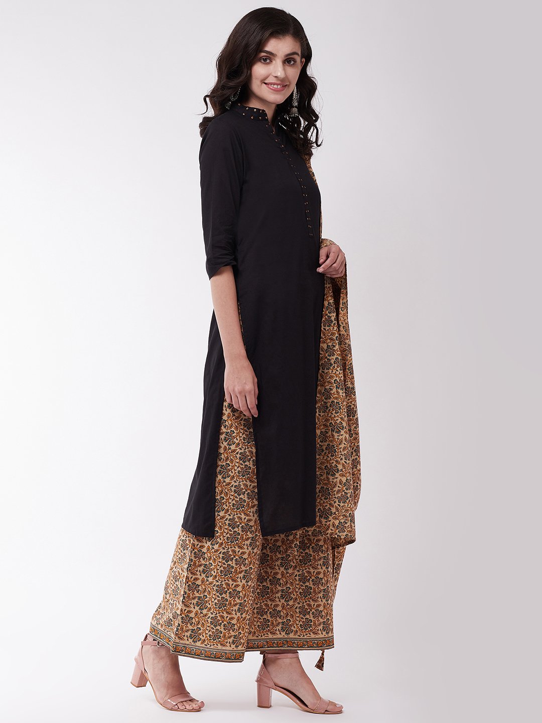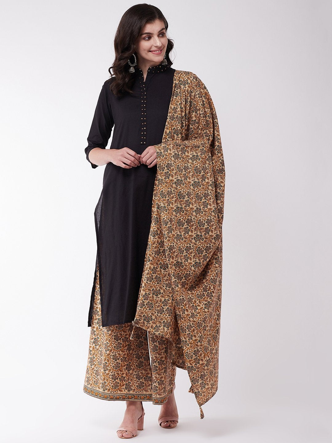 If intricate handloom details are your genre in ethnic wear, you should buy this black and brown coloured kurta set now.