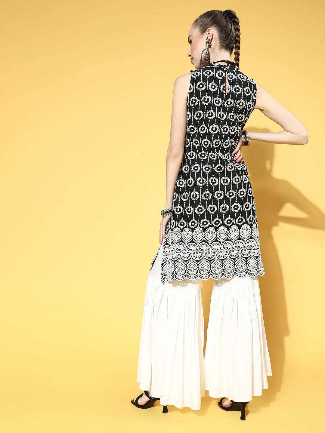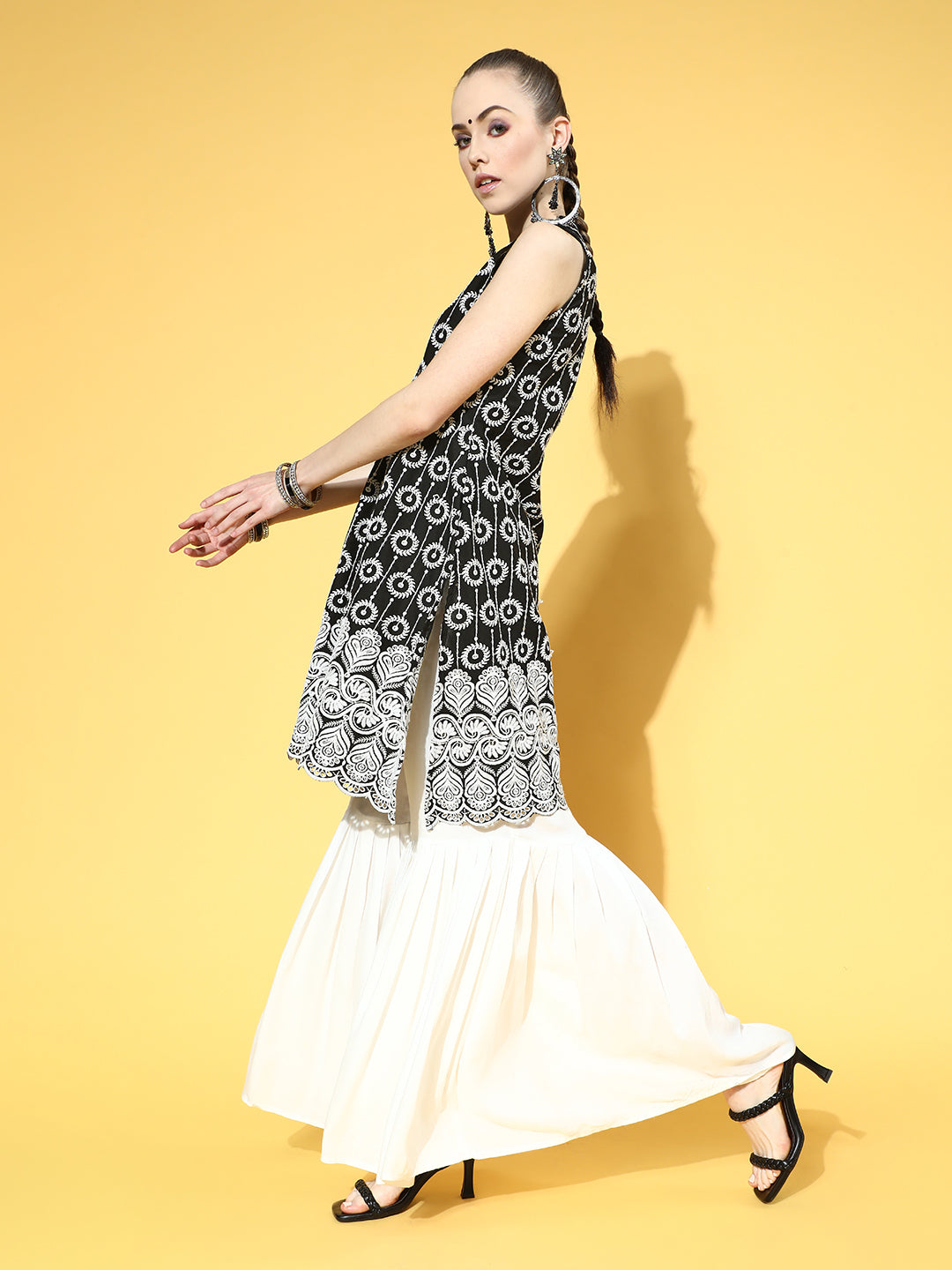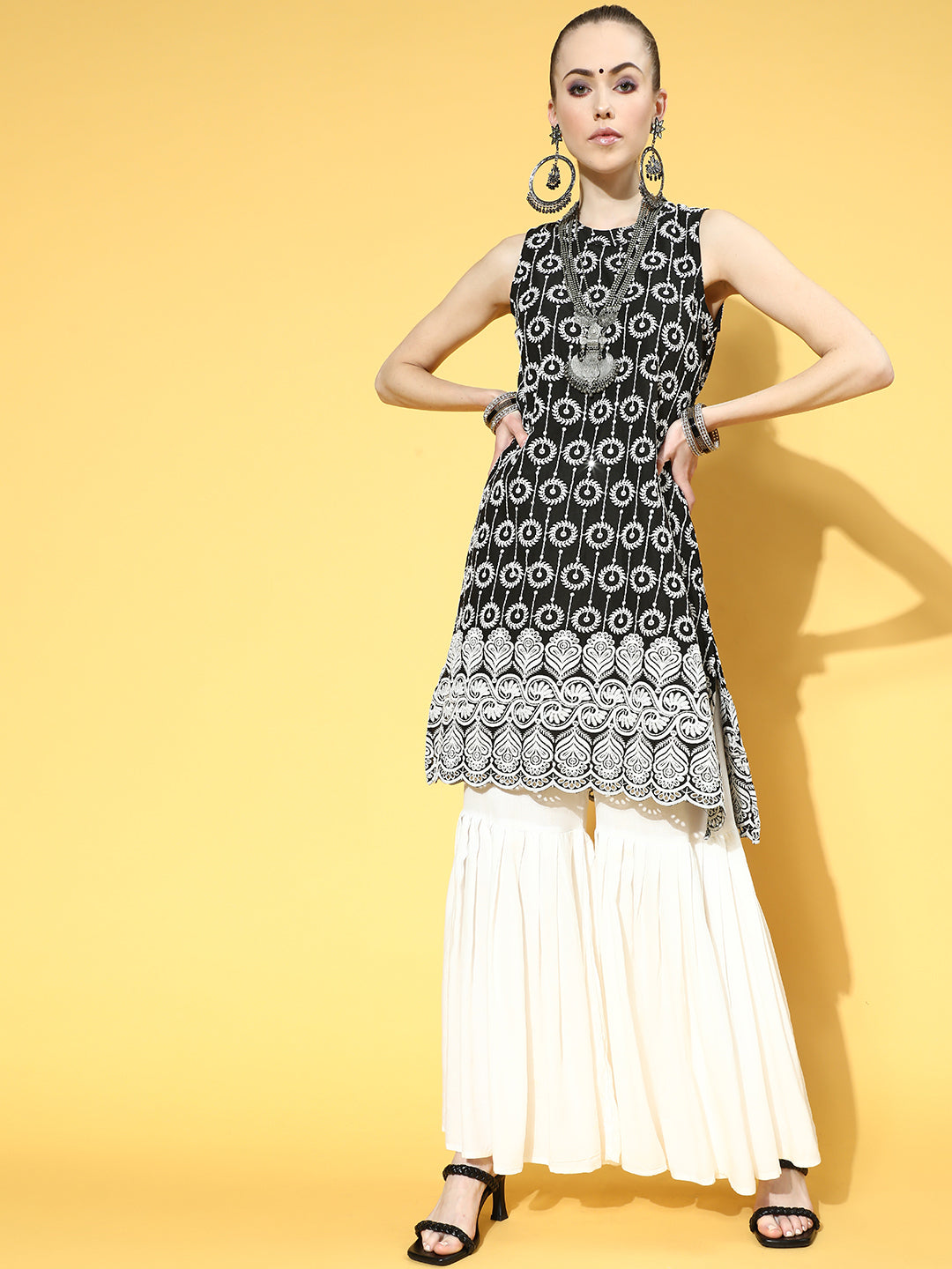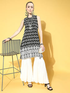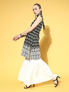The Set is crafted from best of Indian fabrics. Style it with Oxidised jewelery and juttis and you are good to go for any outing Fabric used for Upper : Cotton. Fabric used for Lower : Rayon. Hand Wash Only Seperately.