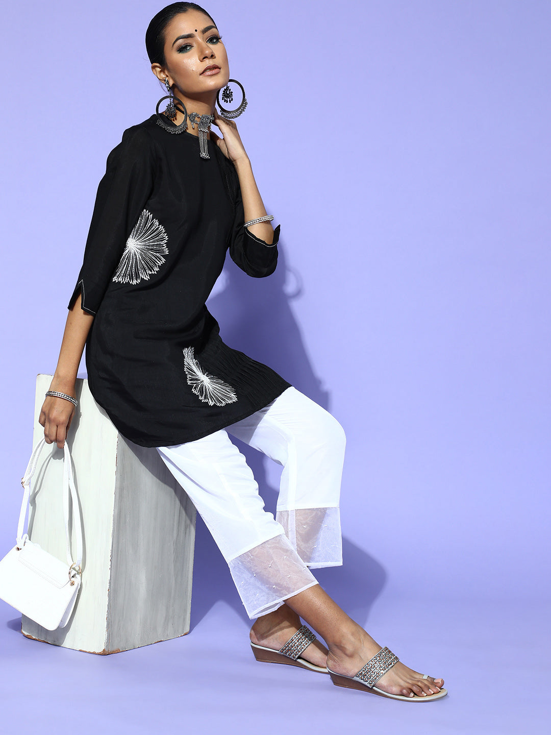 The Top Bottom Set is crafted from best of Indian fabrics. Style it with Oxidised jewelery and a sleek pair of shoes and you are good to go for any outing Hand Wash Only Seperately.