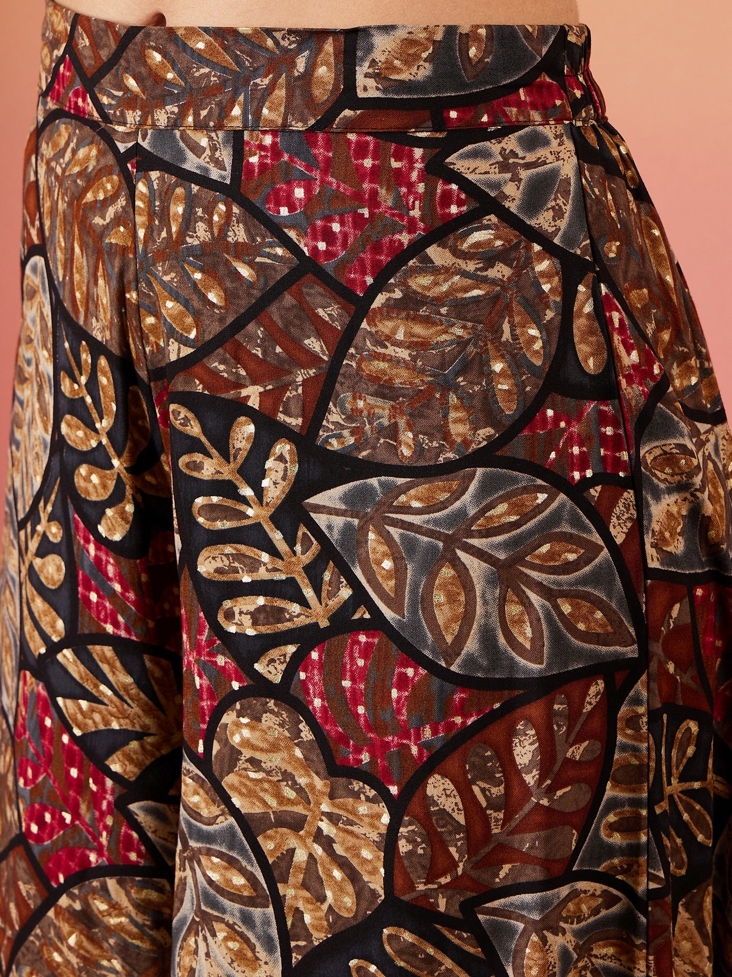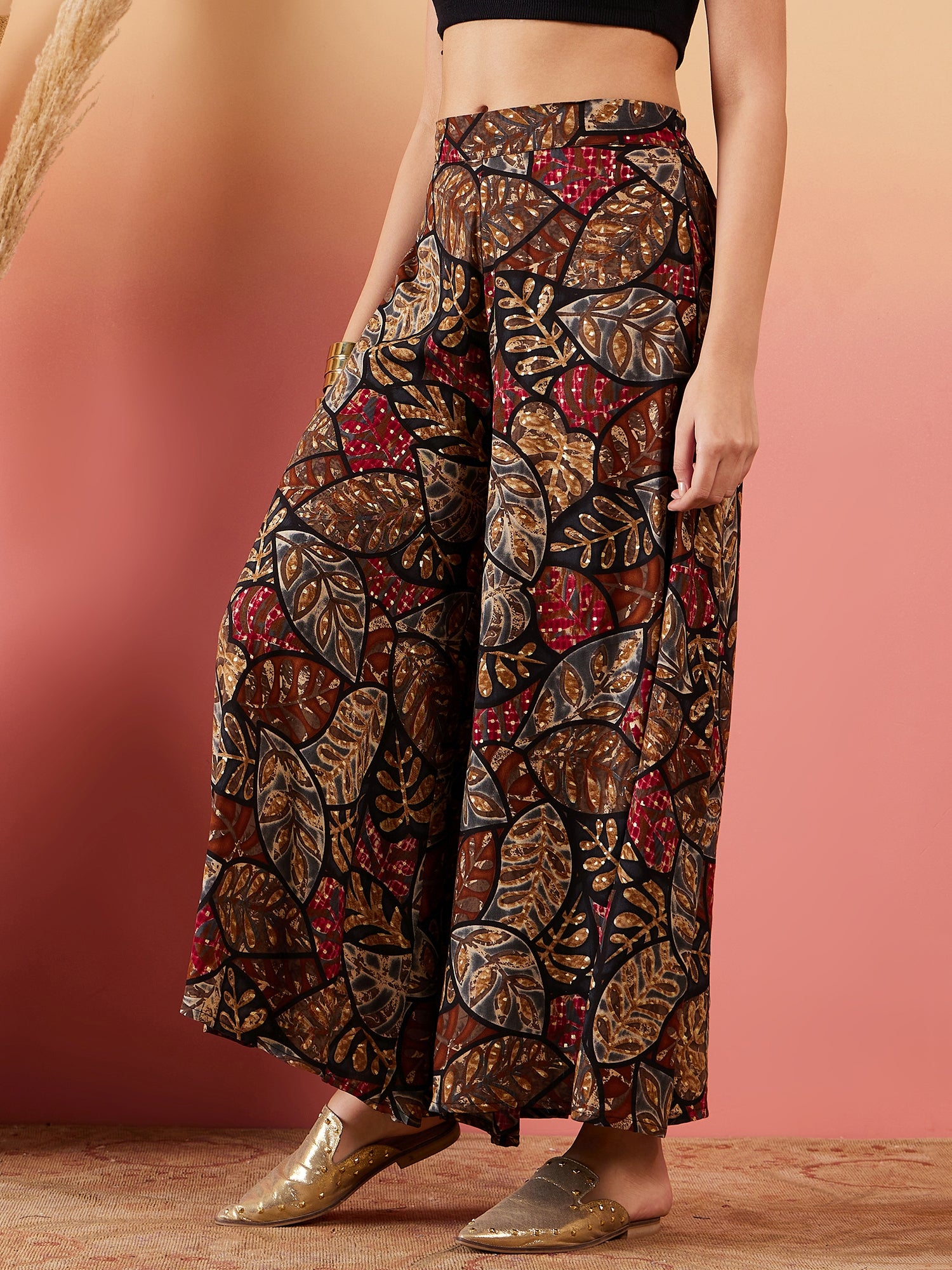 Placeholder Black Grey Leaf Print Foil Palazzo - InWeave