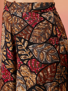 Thanks to the premium fabric and intricate designing, this pair of maroon Kalamkari palazzo is high bet to stay in vogue. Complement these women palazzo with cap sleeves tops.