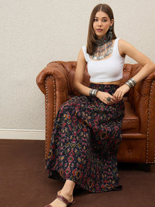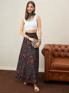 Black Ikkat Print A-Line Skirt