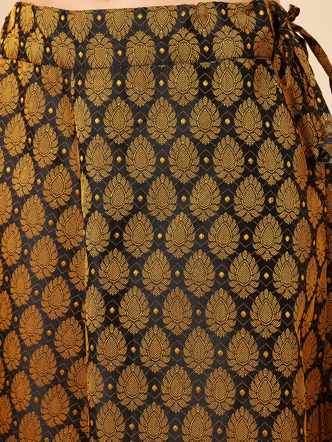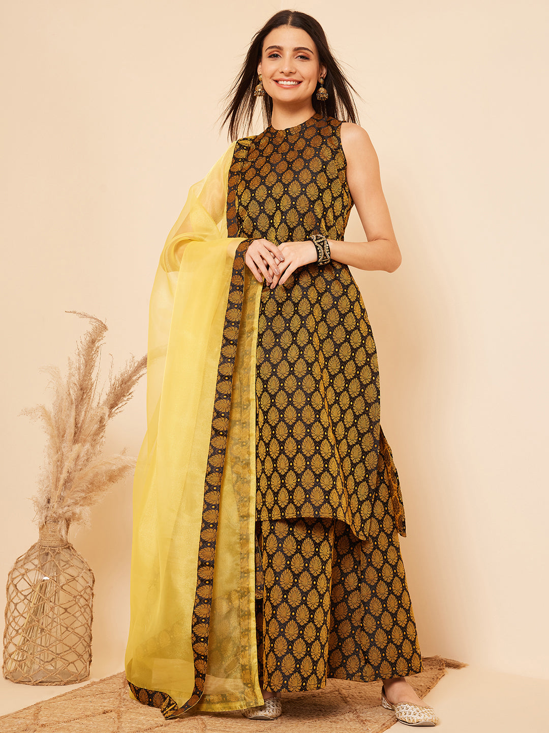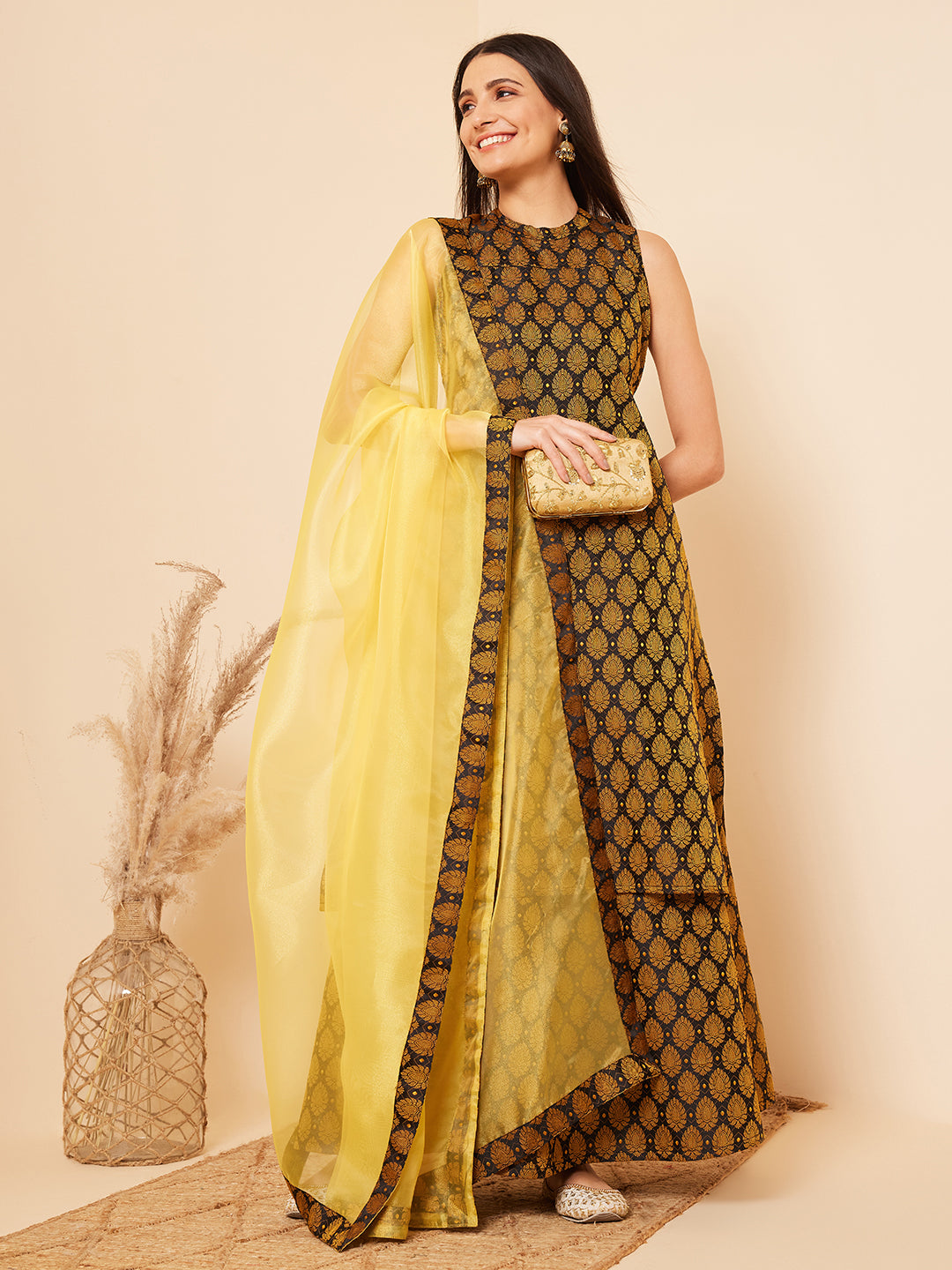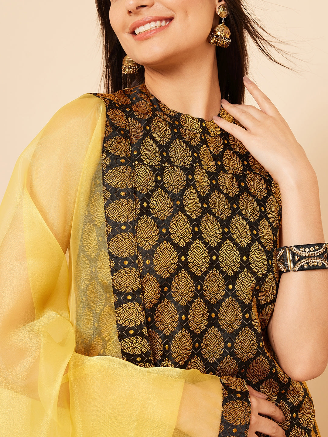 Placeholder Black Jacquard Halter Kurta Set W Yellow Or Dupatta - InWeave