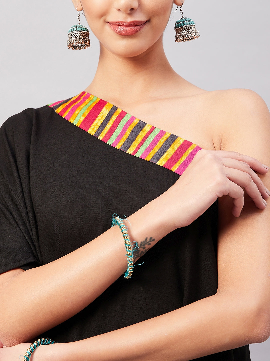 The Set is crafted from best of Indian fabrics. Style it with Oxidised jewelery and juttis and you are good to go for any outing Hand Wash Only Seperately.
