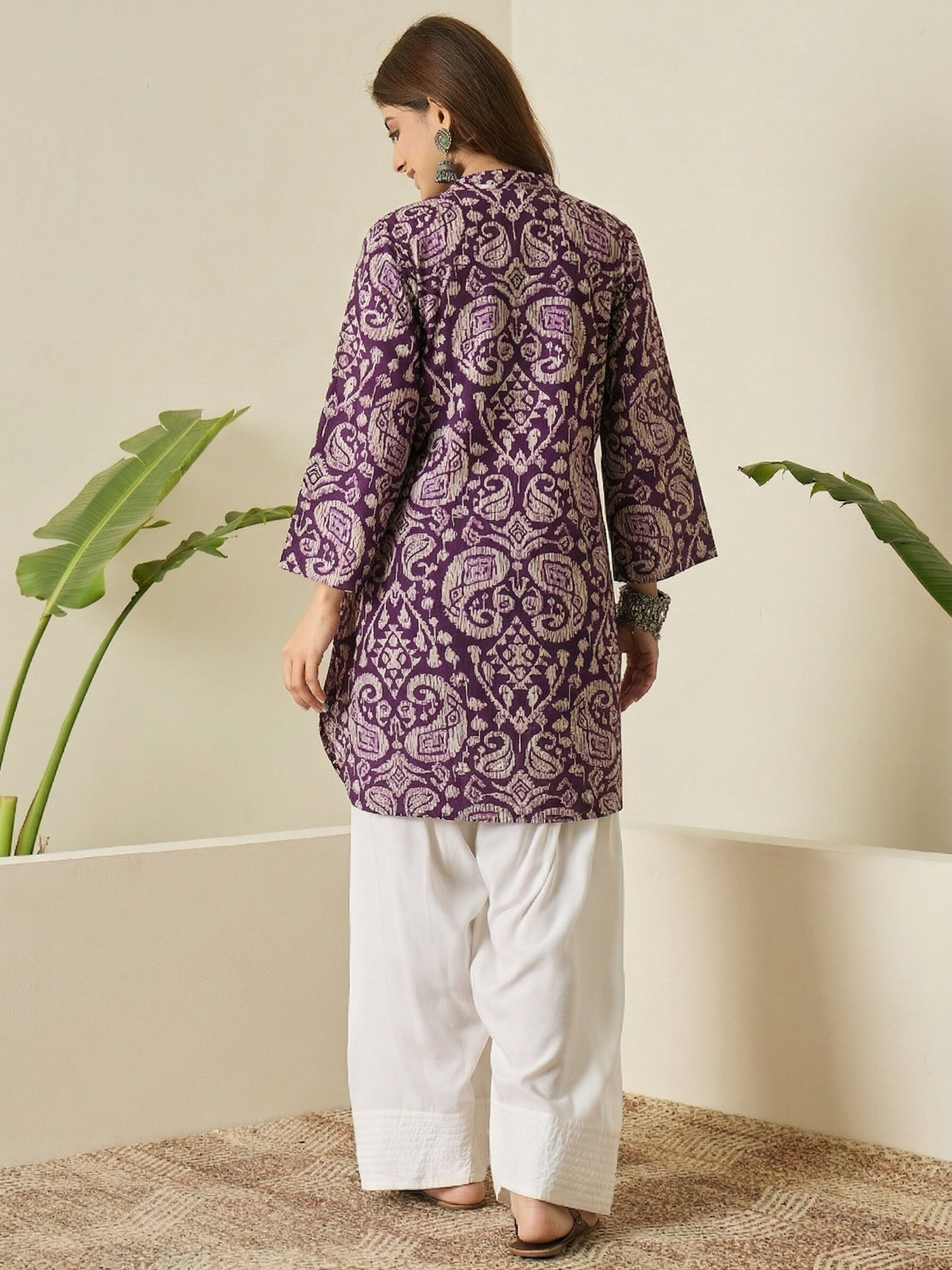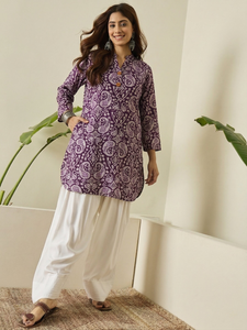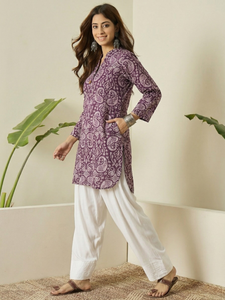 Charming Dusty Mauve kurta White salwar set designed with full sleeves. Made from breathable fabric, it offers a feminine look with all-day comfort, ideal for casual wear or subtle festive styling.